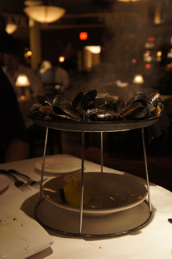 I don’t normally like mussels or any type of sea food that involves using my fingers (like crab legs and lobster… seriously I just can’t ever get that SMELL out of my fingers and it drives me wild), but everyone around us was feasting on these sizzling pans of mussels. Needless to say, I immediately ordered my own piping hot pan. It was wonderful.