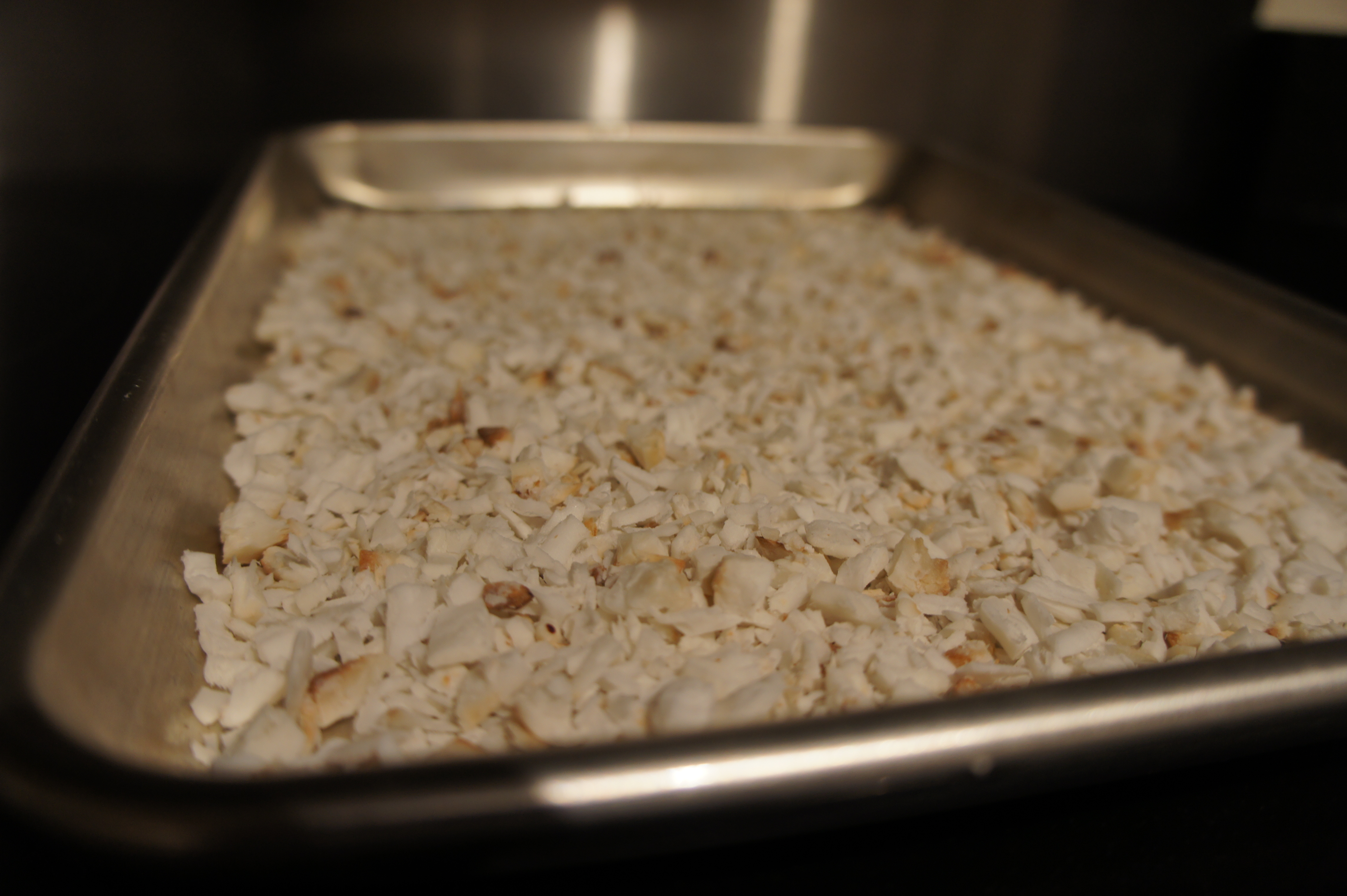 - Shred roasted coconut with a microplane for fine flakes, or a large box shredder for thicker flakes.