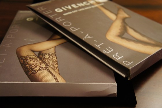I met up with my cousin Jenny and we went on some retail therapy before indulging in some mimosas and brunch. Anyway… Jenny and I both bought these awesome eyeshadow palettes and eyeshadow brushes at Sephora for $7 each from the sale bin. I love the sale bins!! Jenny also got a hot pink lipstick for $3… such a steal! I also raided the Lord and Taylor Hosiery section and scored some lacy Givenchy tights. I paid $5 for each. I thought I’d share!