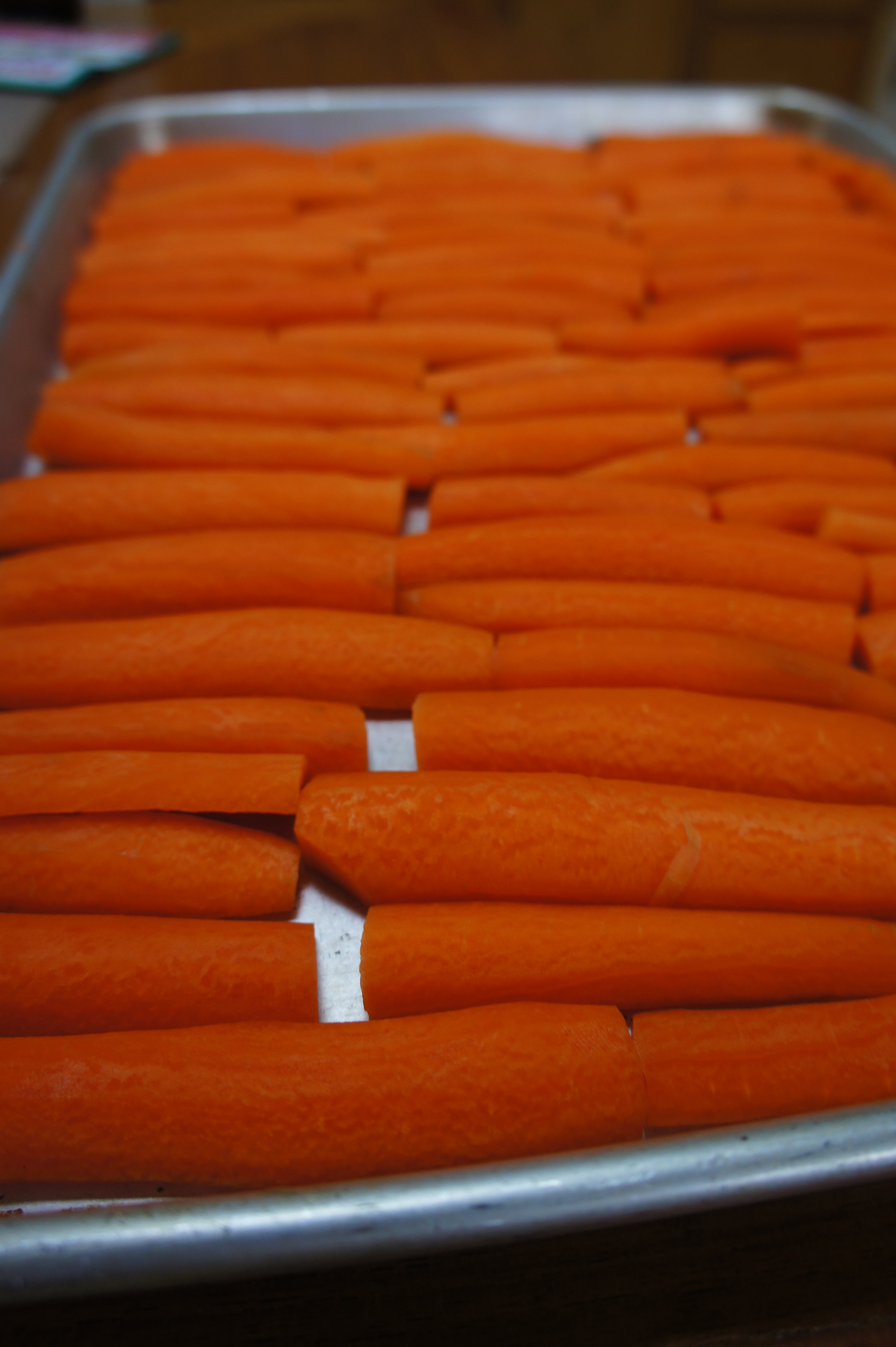 Carrots, arranged neatly for roasting